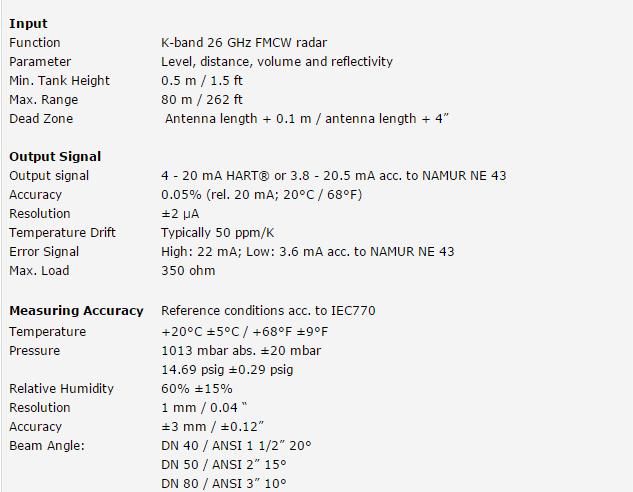 • Antenna designs allow level measurements in liquids, slurries, solids and granular measurements to