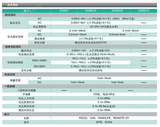 ZX9501係列耐壓儀具有列表掃描顯示功能, 客戶可以