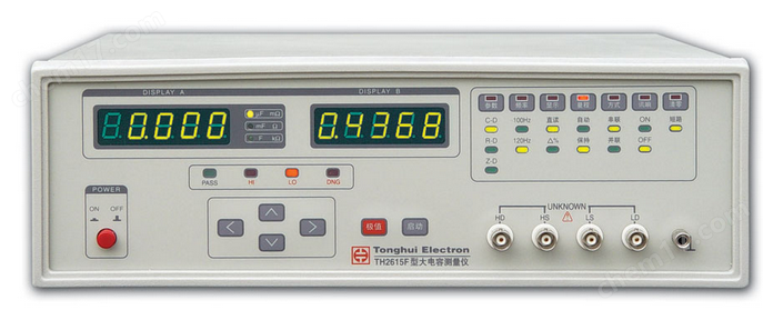 TH2615F型大電容測量儀是一種專門針對大電容量電容器測試的高精度儀器,除了能測試容量、損耗外,還能測試電容的串聯等效電阻ESR以及阻抗,滿足生產線質量保證、進貨檢驗及實驗室高精確度測量要求。