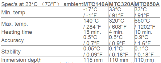 MTC係列包括3種型號,分別對應不同溫度範圍。所有型號都有RS232接口,JOFRACAL 校準軟件為標準配置。