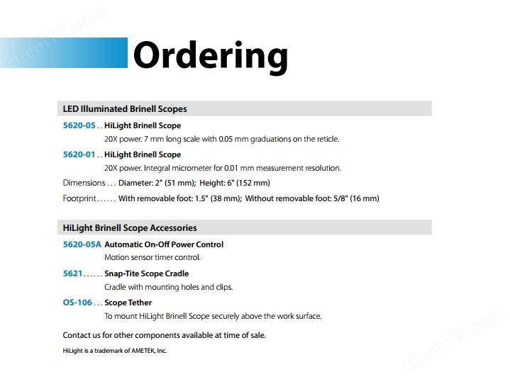 光學鏡布氏硬度計傳統的布氏放大鏡通過鏡頭上的一個開口由內部的手電 筒光源照射布氏壓痕。操作人員通常手動移動照明角度 以得到壓痕測試區域的圖像因此在測量中引入了更多的 偏差。HiLight布氏放大鏡是全封閉的,所以除了內部的 LED光源,沒有外界光源對測試圖像進行幹擾。在20X 放大鏡的輔助下形成Z佳表麵照明條件,確保得到更為 可靠的結果不論是布氏壓痕還是熱處理樣品的硬化層總 深度。