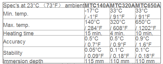 MTC係列包括3種型號,分別對應不同溫度範圍。所有型號都有RS232接口,JOFRACAL 校準軟件為標準配置。